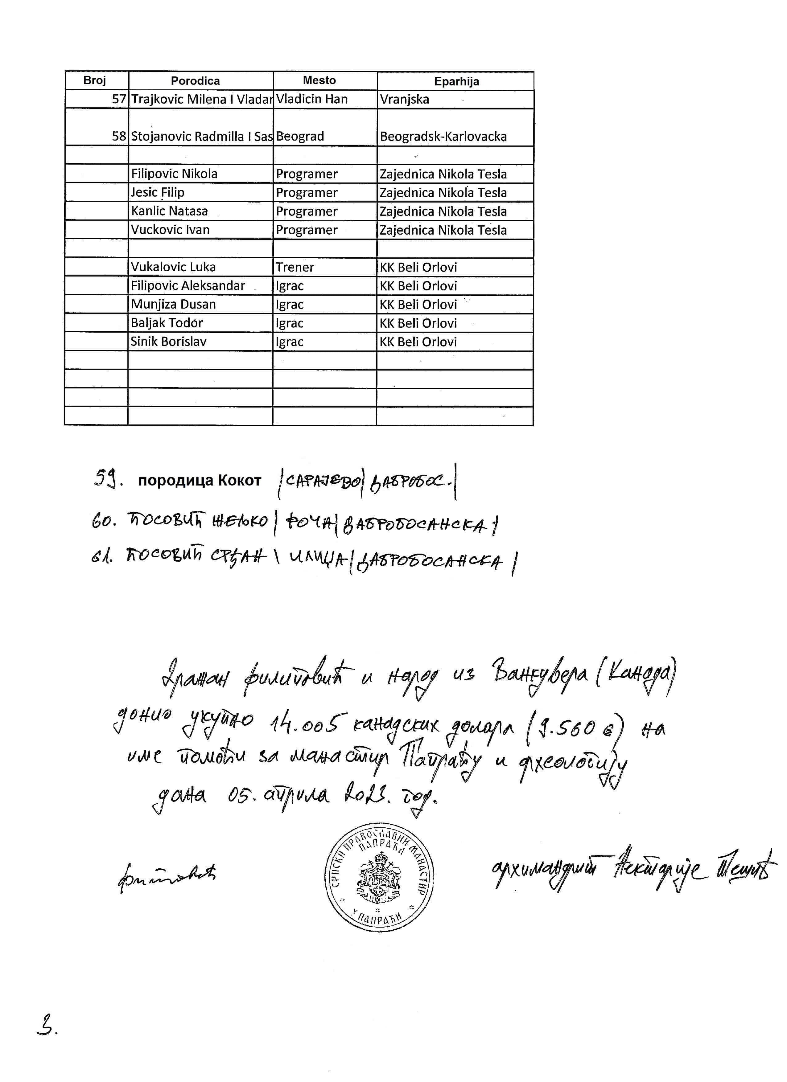 At the beginning of April 2023. Mr. Dražan Filipović delivered us the funds he had collected from our people in Vancouver (Canada). We would like to take this opportunity to thank him for his efforts and financial aid, as well as to express gratitude to all the people who took part in collecting aid for our monastery, especially now when archaeological investigations are ongoing and when huge resources are needed to implement them as they should be. We believe that our Lord, through the prayers of the Most Holy Mother of God and every one of His Saints, will pour out abundant grace on all those who have helped so far and those who want to participate in the renovation of our monastery.
